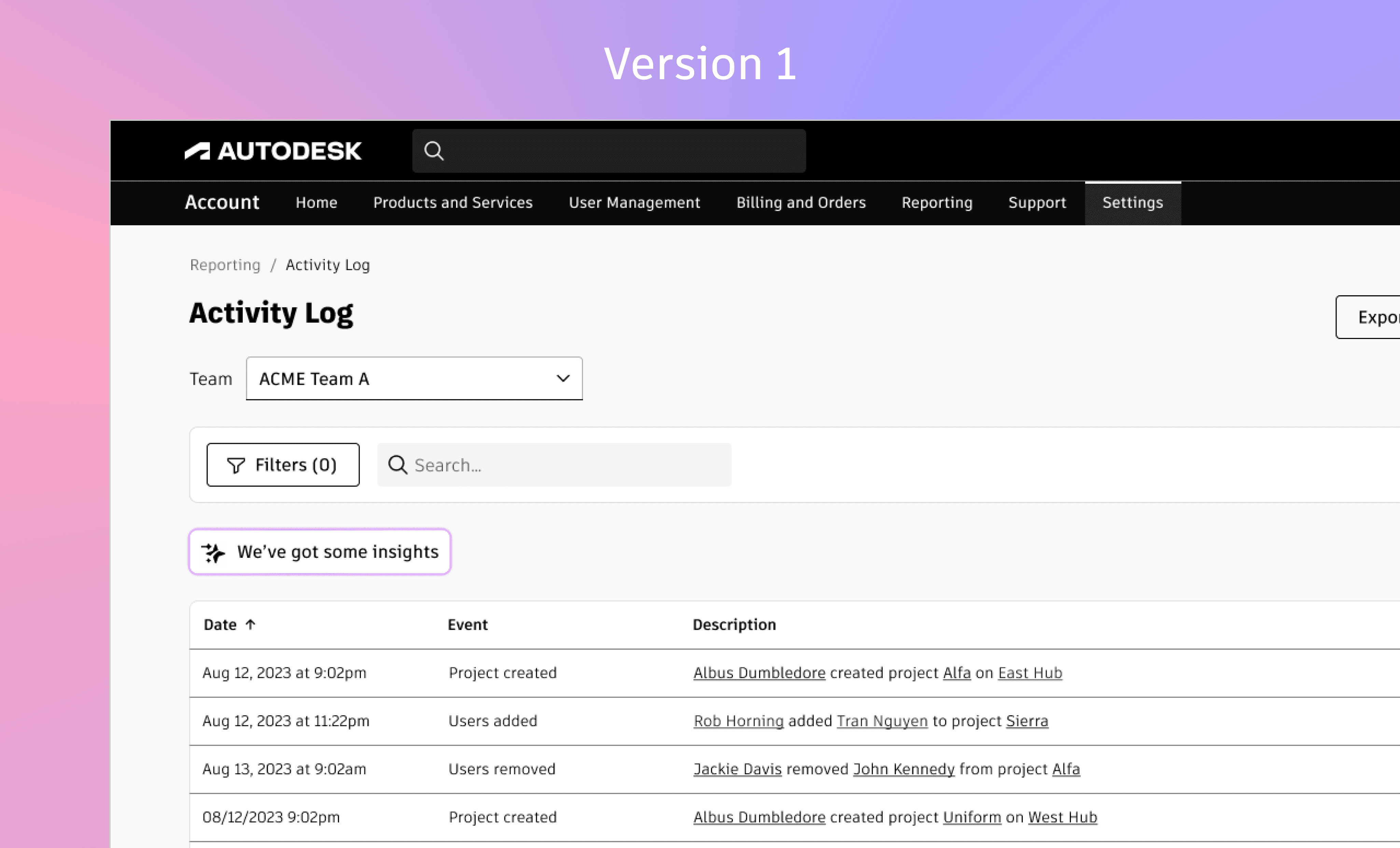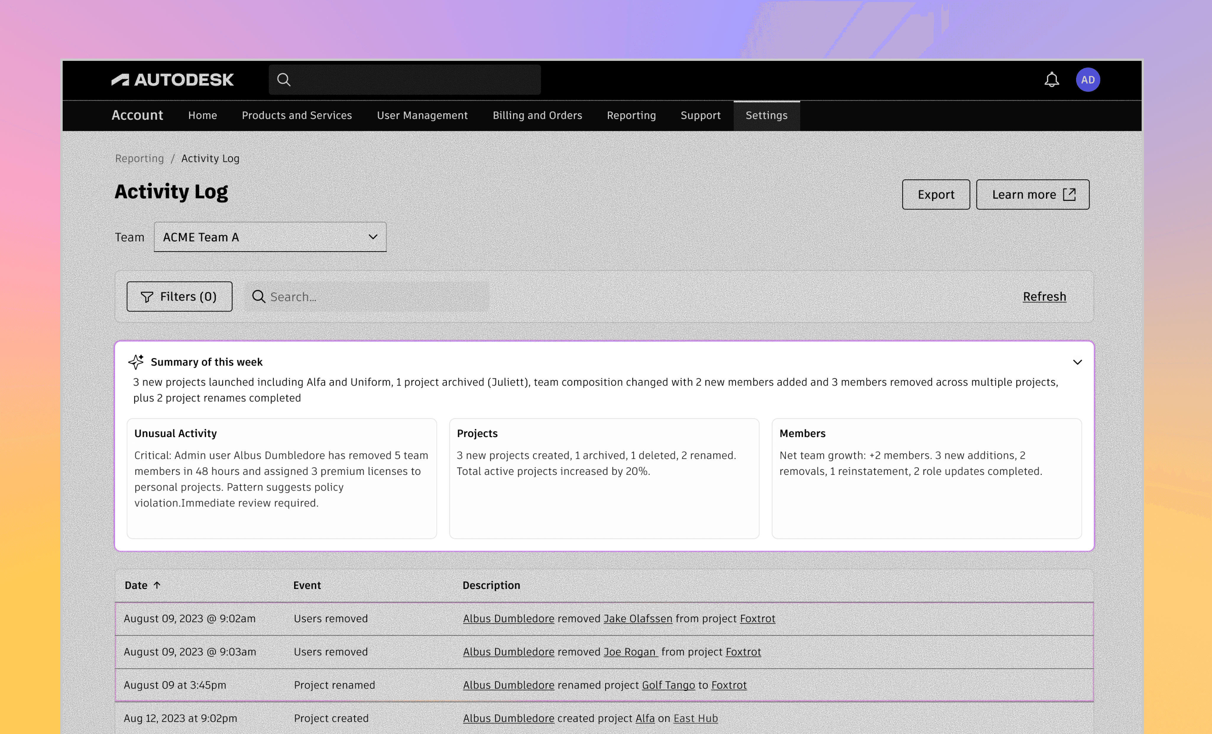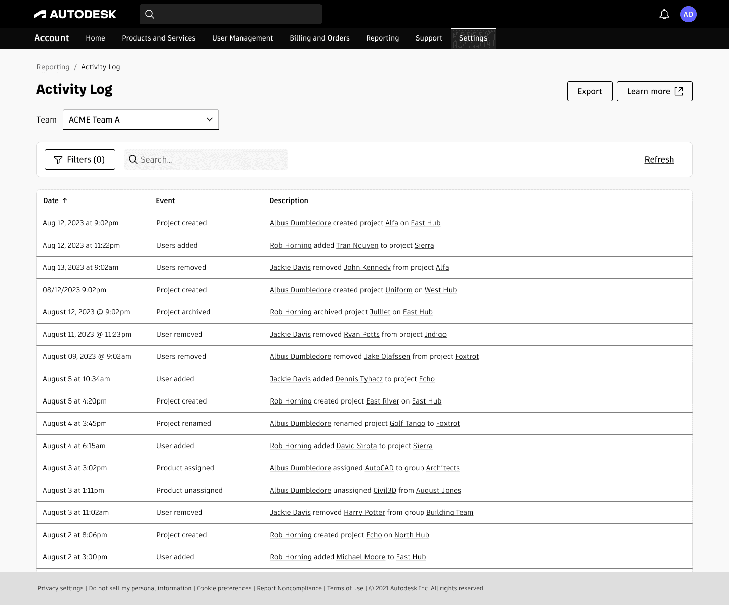 Activity Log in Autodesk Accounts