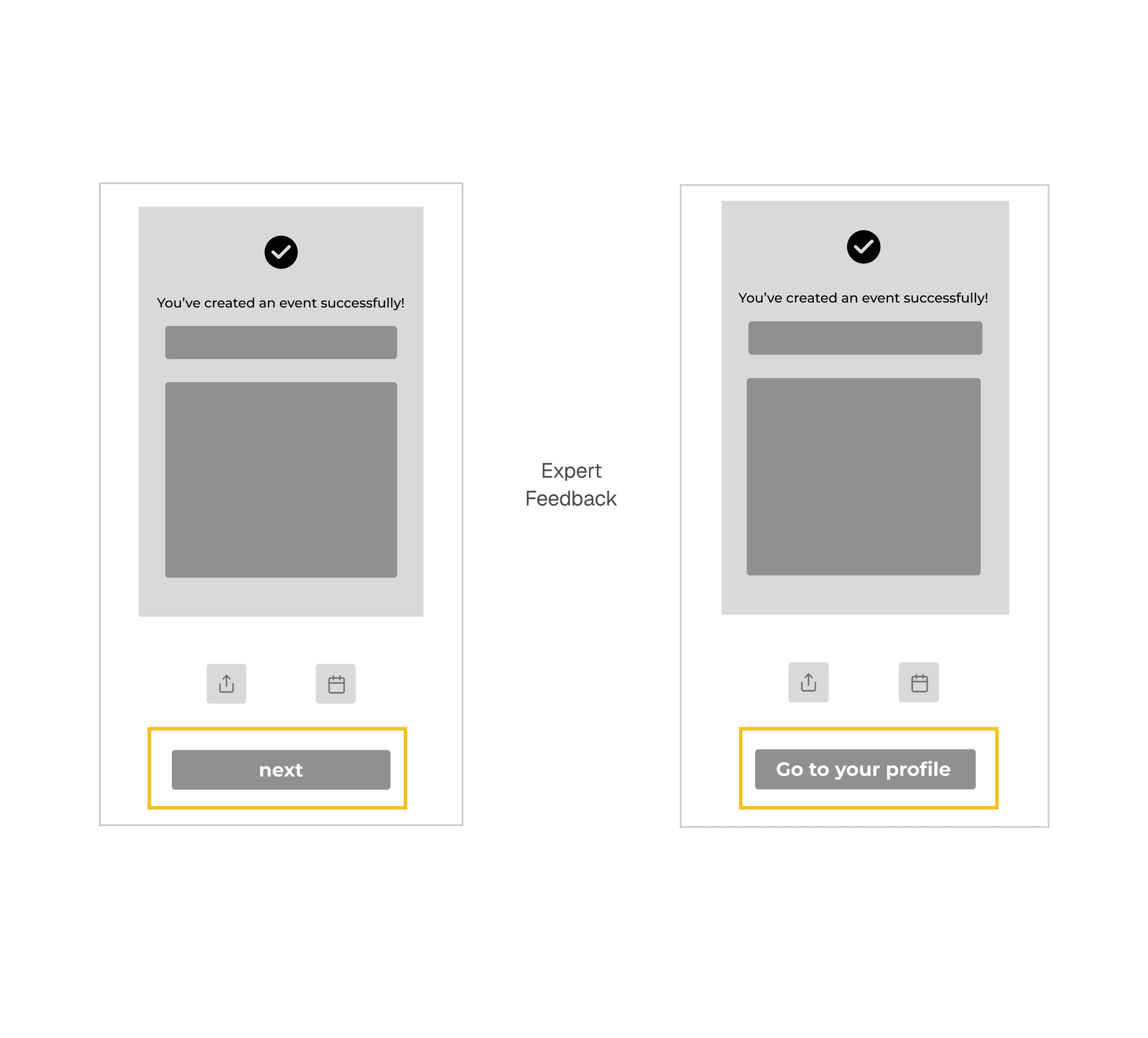 I also had an expert interaction during the testing phase. The expert highlighted that button labels should clearly describe the user’s next action. Based on this, I changed vague text like “Next” to “Go to your profile” to make navigation more intuitive.