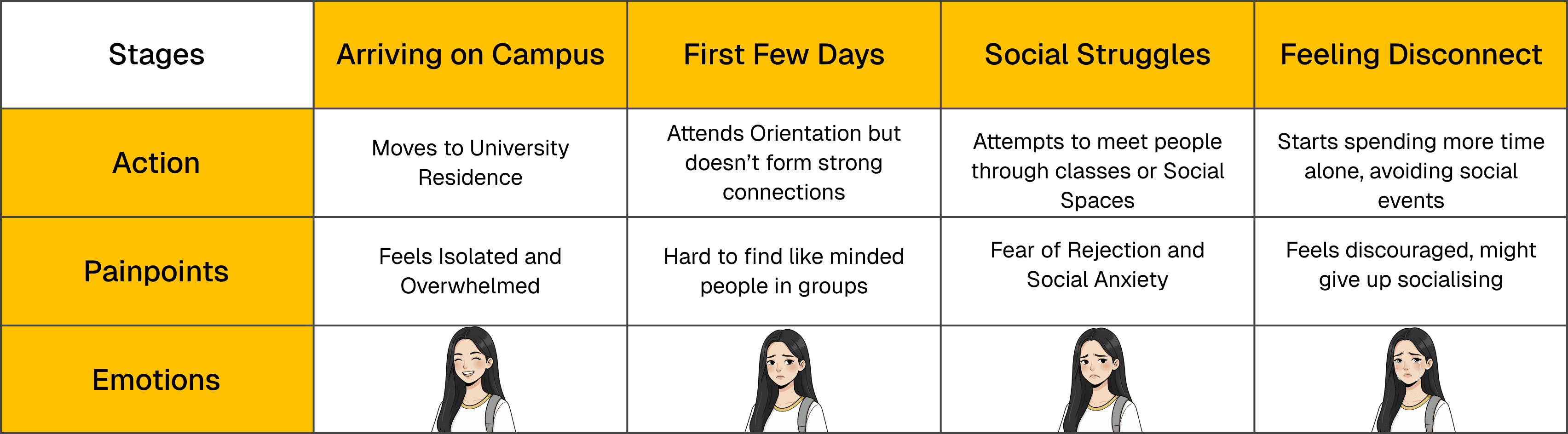 Conducted 2 interviews with first-year international students to understand their early social challenges.
