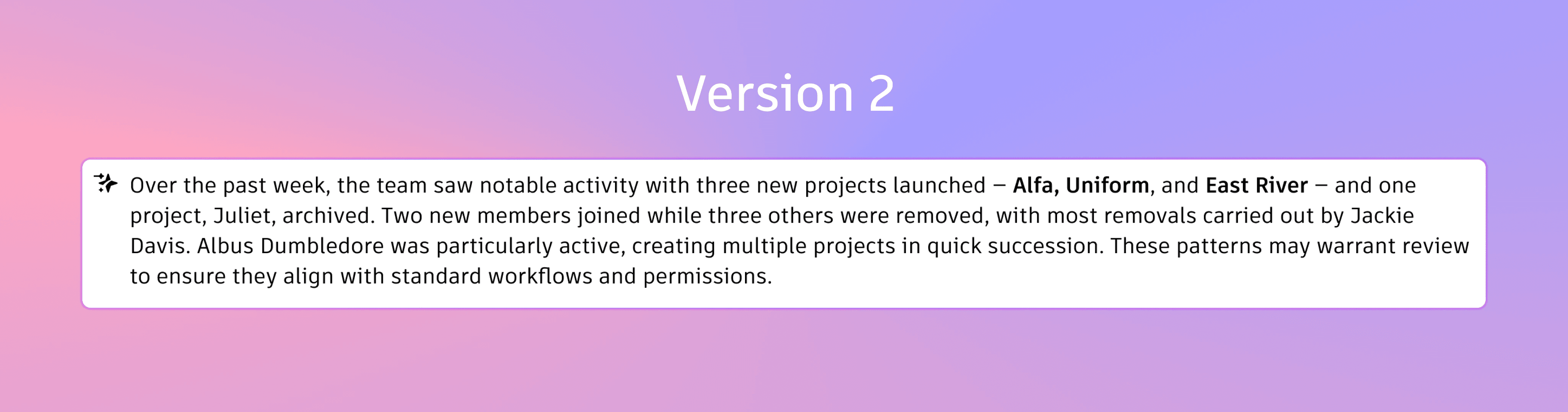 An insight without a clear next step still adds mental effort. The moments that worked best were when the insight quietly pointed to what to do next, like viewing users, checking recent activity, or jumping straight to the relevant part of the log.