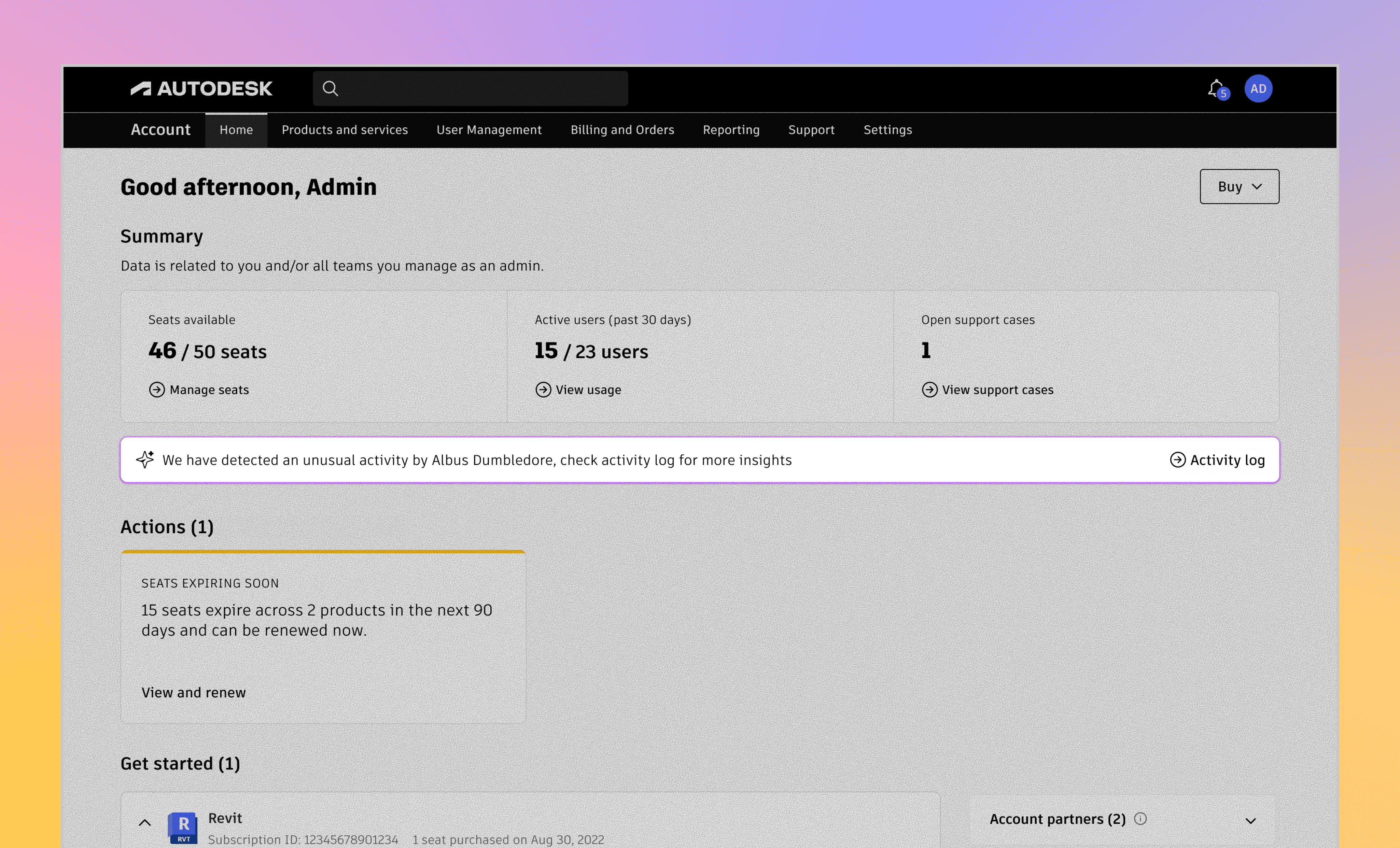 Autodesk Accounts used by admins
