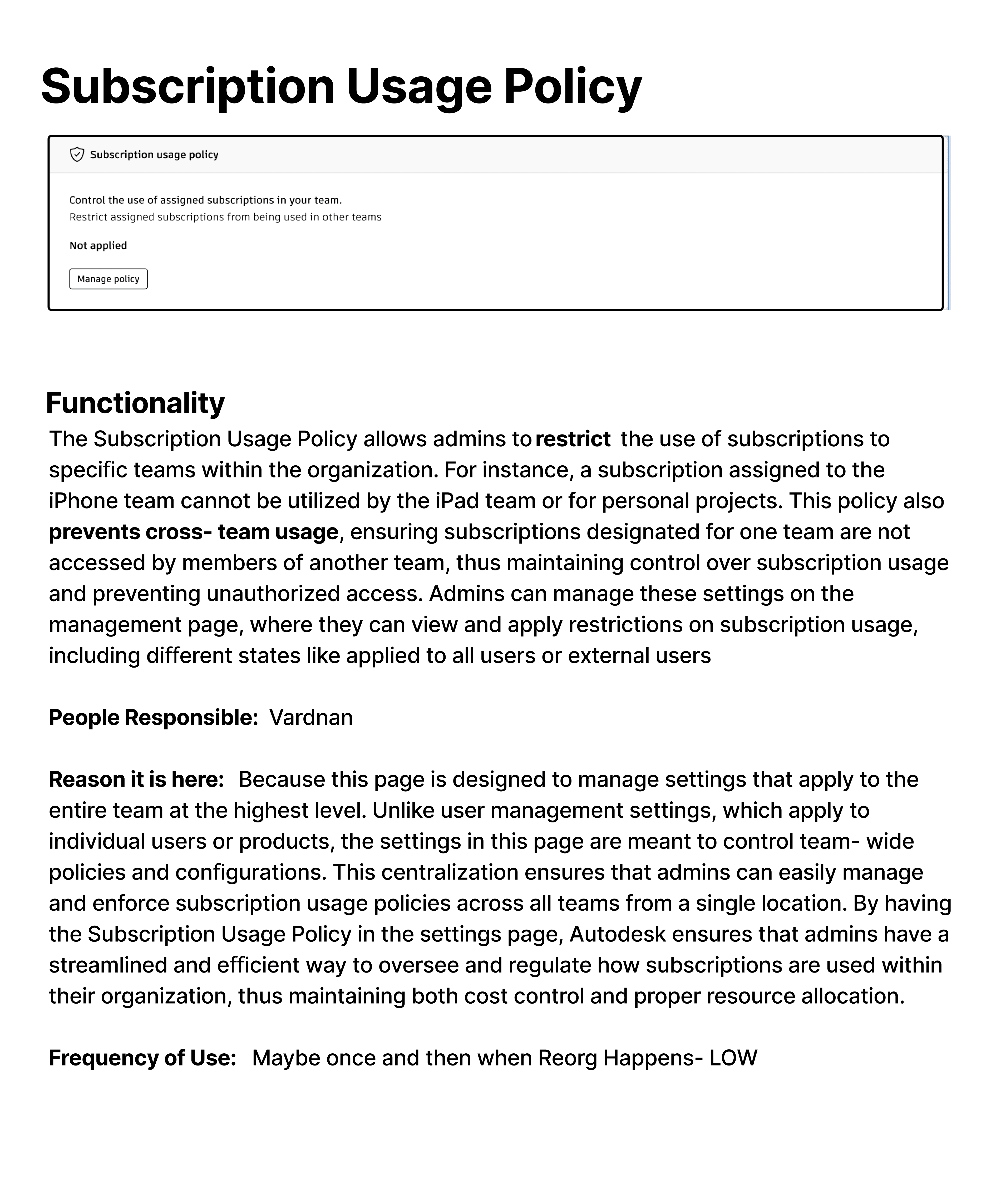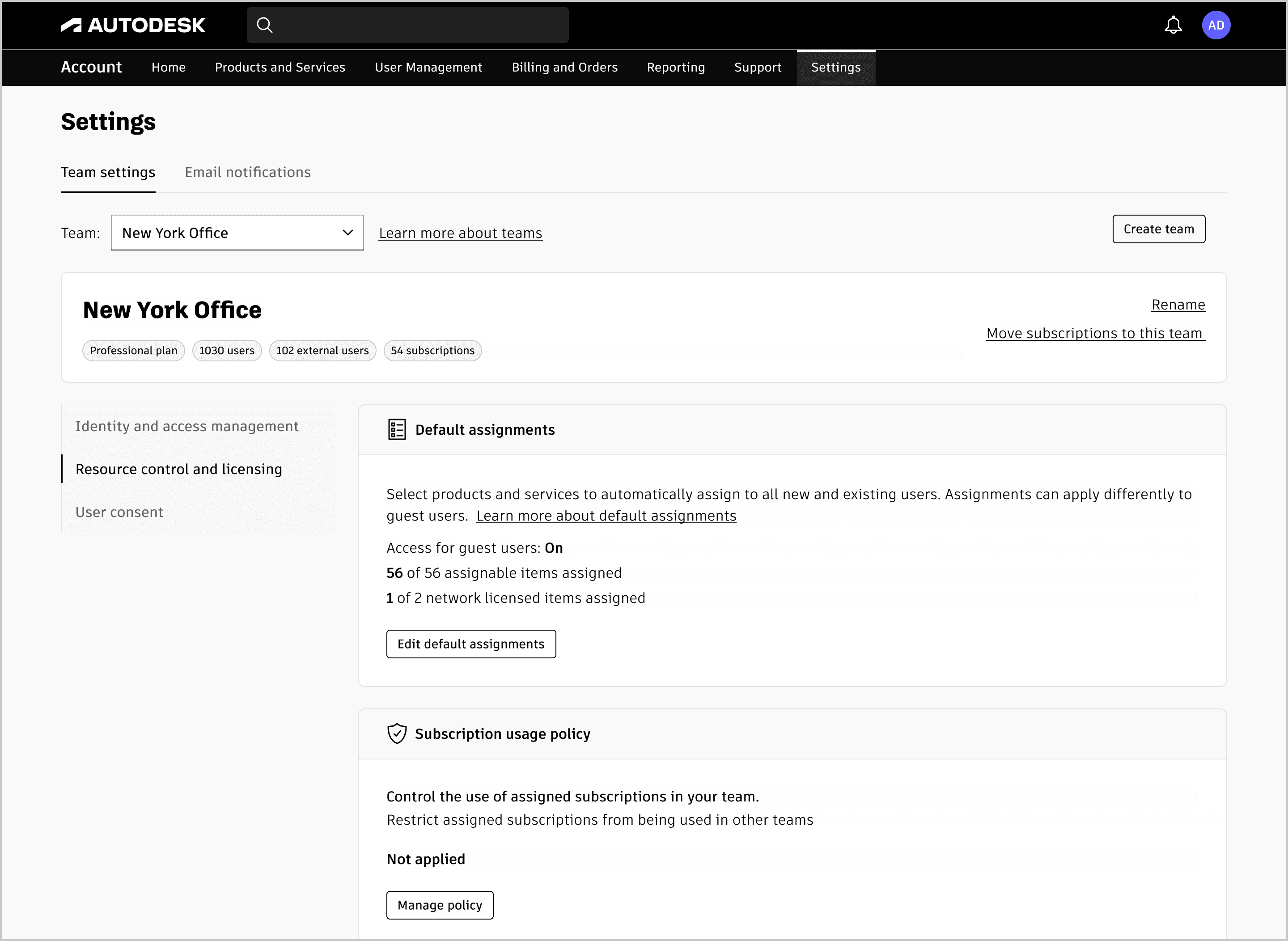 Default Assignments (52%) and Subscription Usage Policy (76%) went into Resource Control & Licensing.