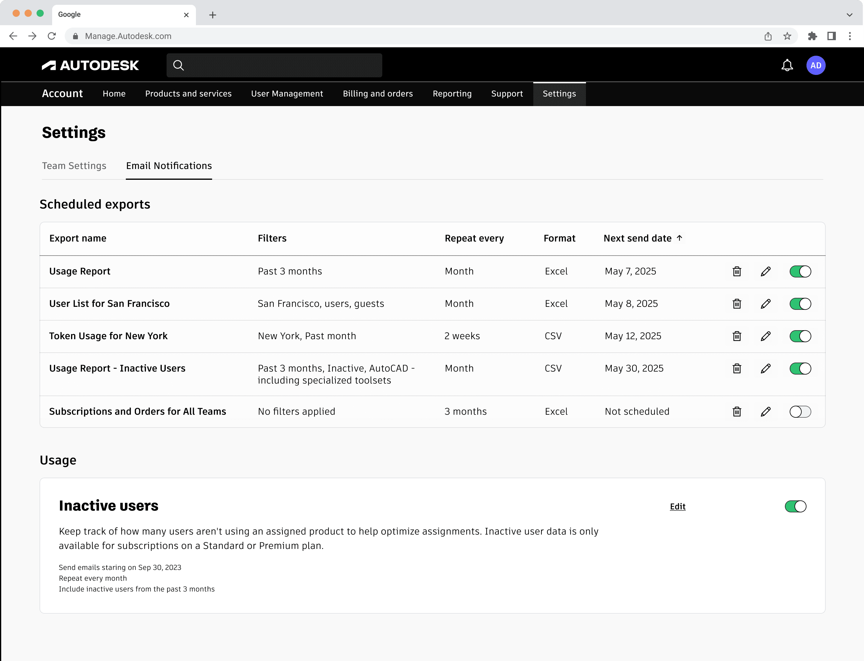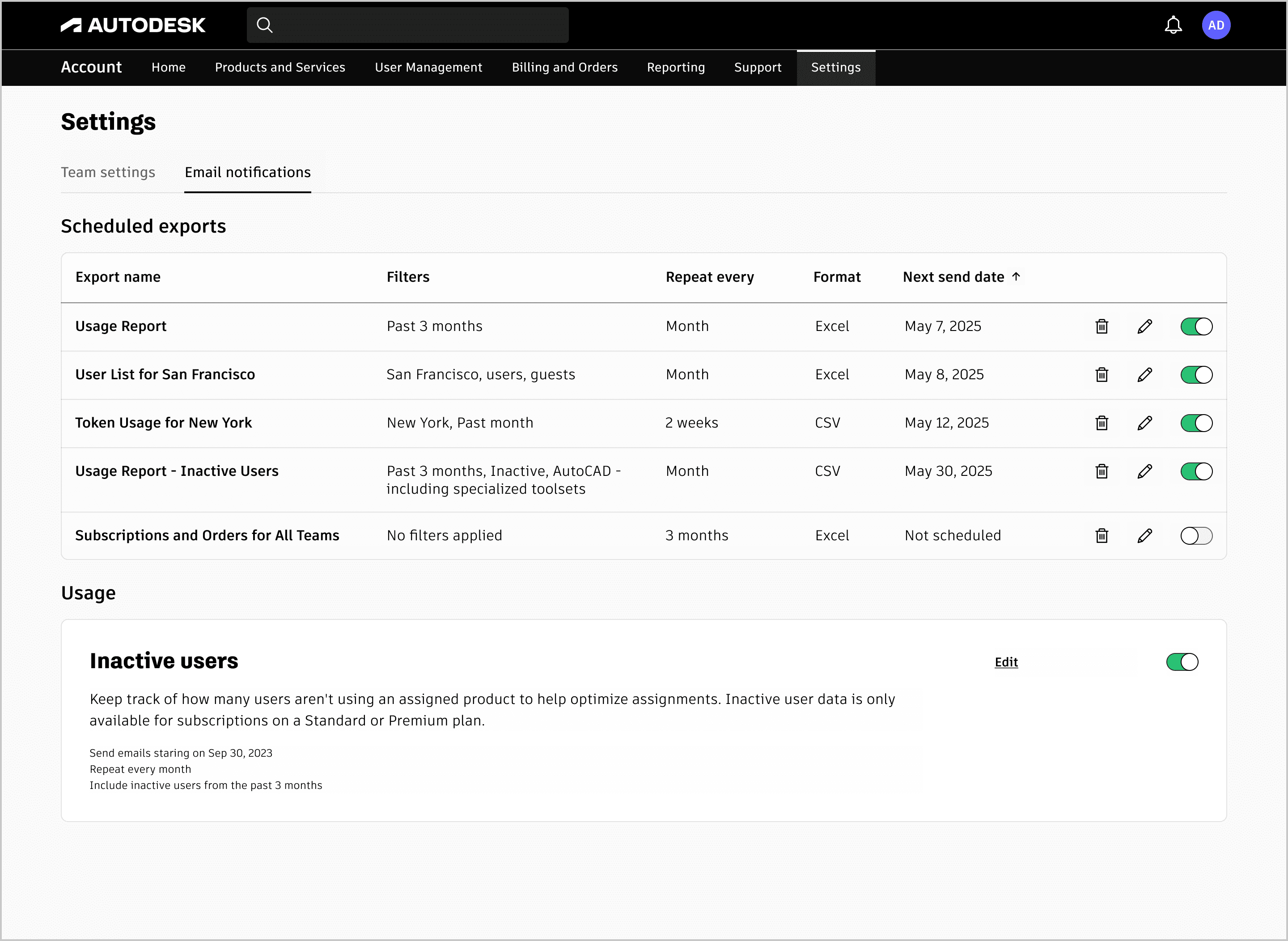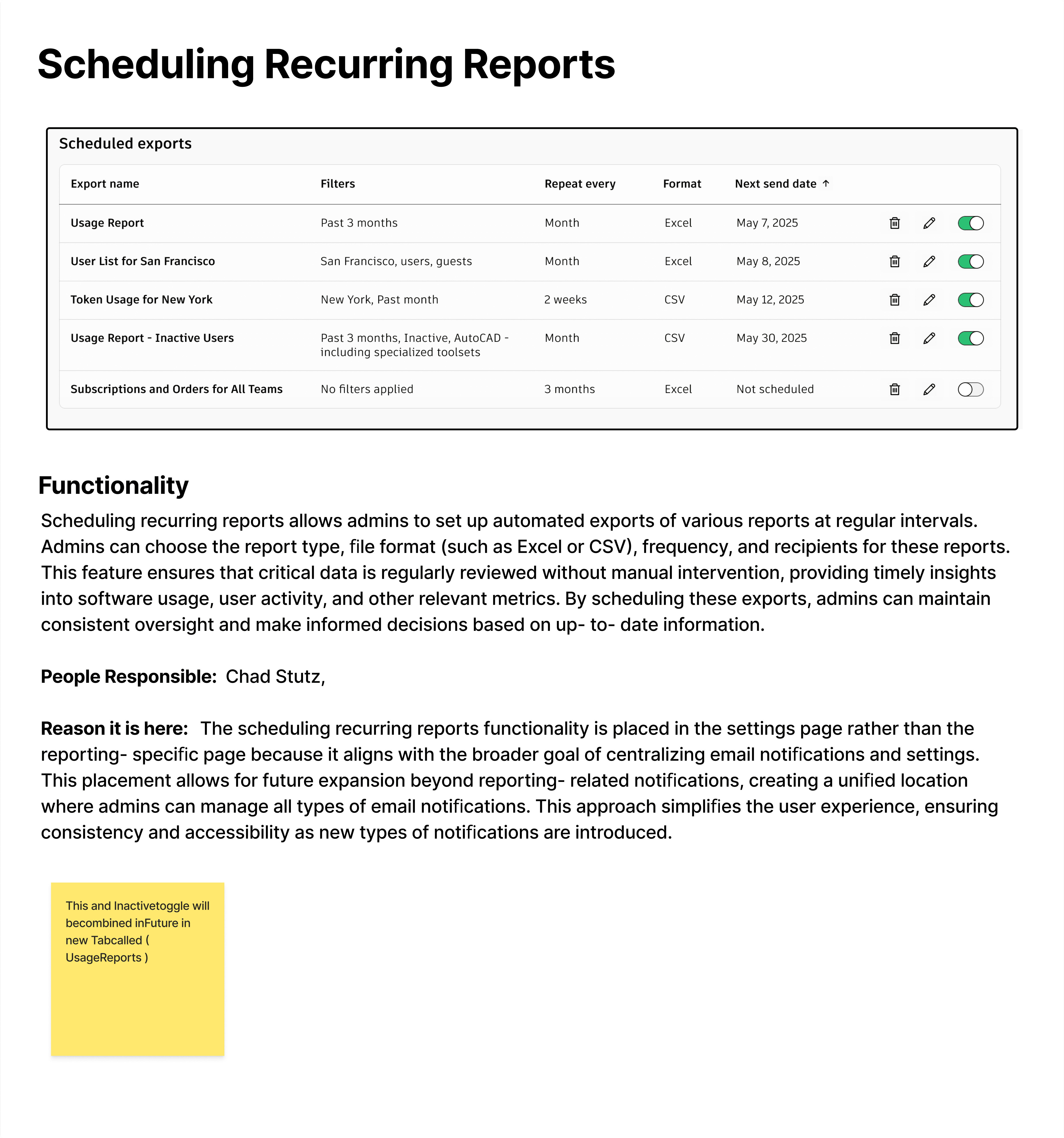 Report Scheduling (96%) and Inactive Users Notification (88%) went into Reporting and Notifications.