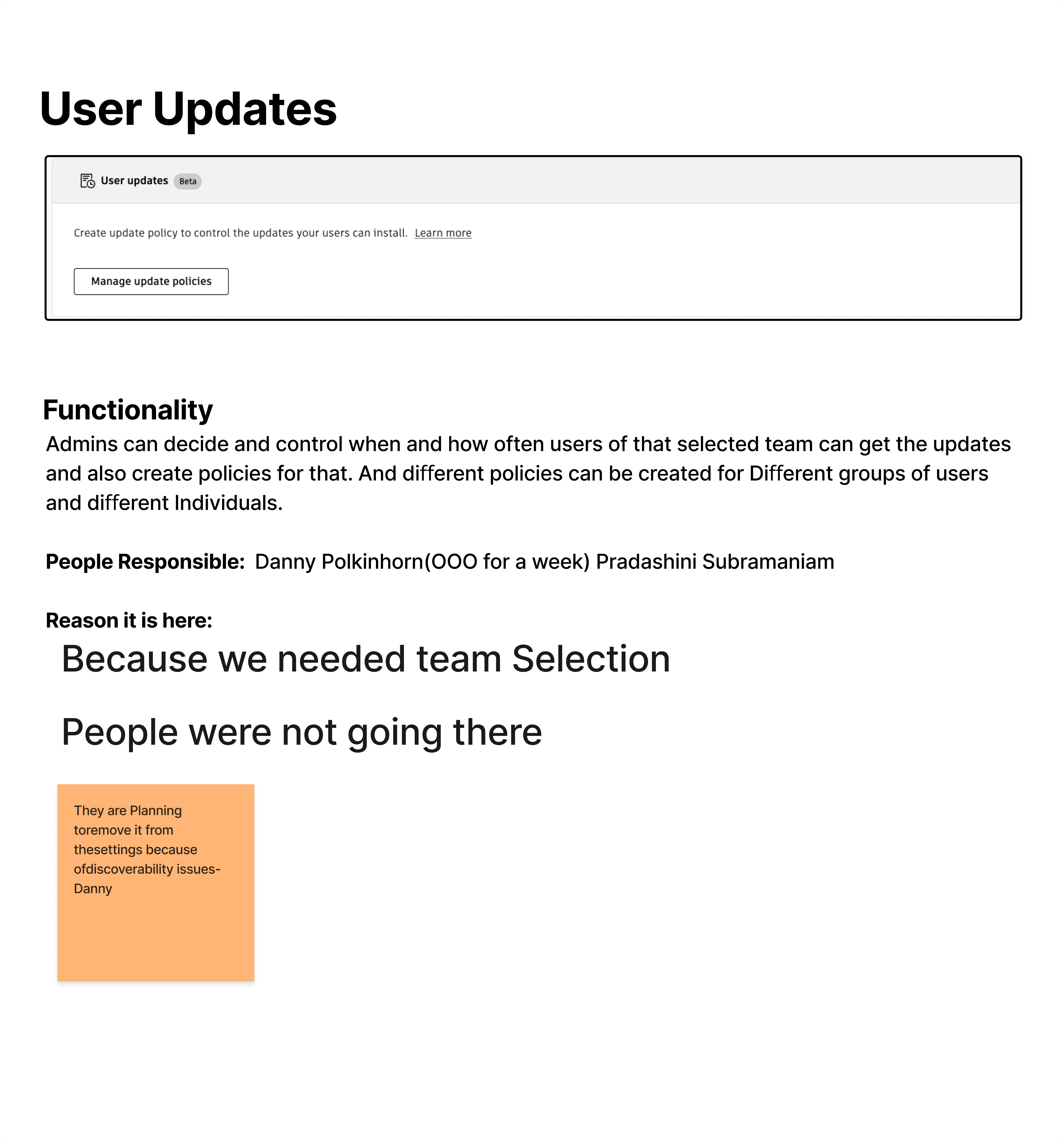 After reviewing the settings myself, I realized that just knowing what existed was not enough. To understand the background, I spoke with the stakeholders who owned each setting, including product managers and Designers.