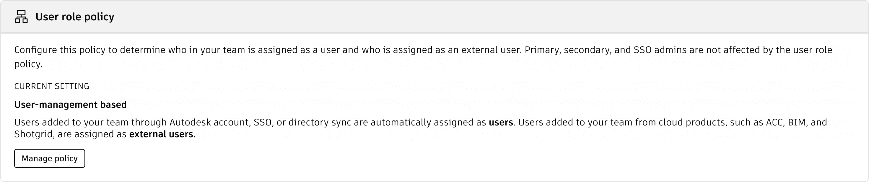 At present, almost every setting is placed under one broad label called User Management, which turns the page into a long list rather than a structured, scalable system.