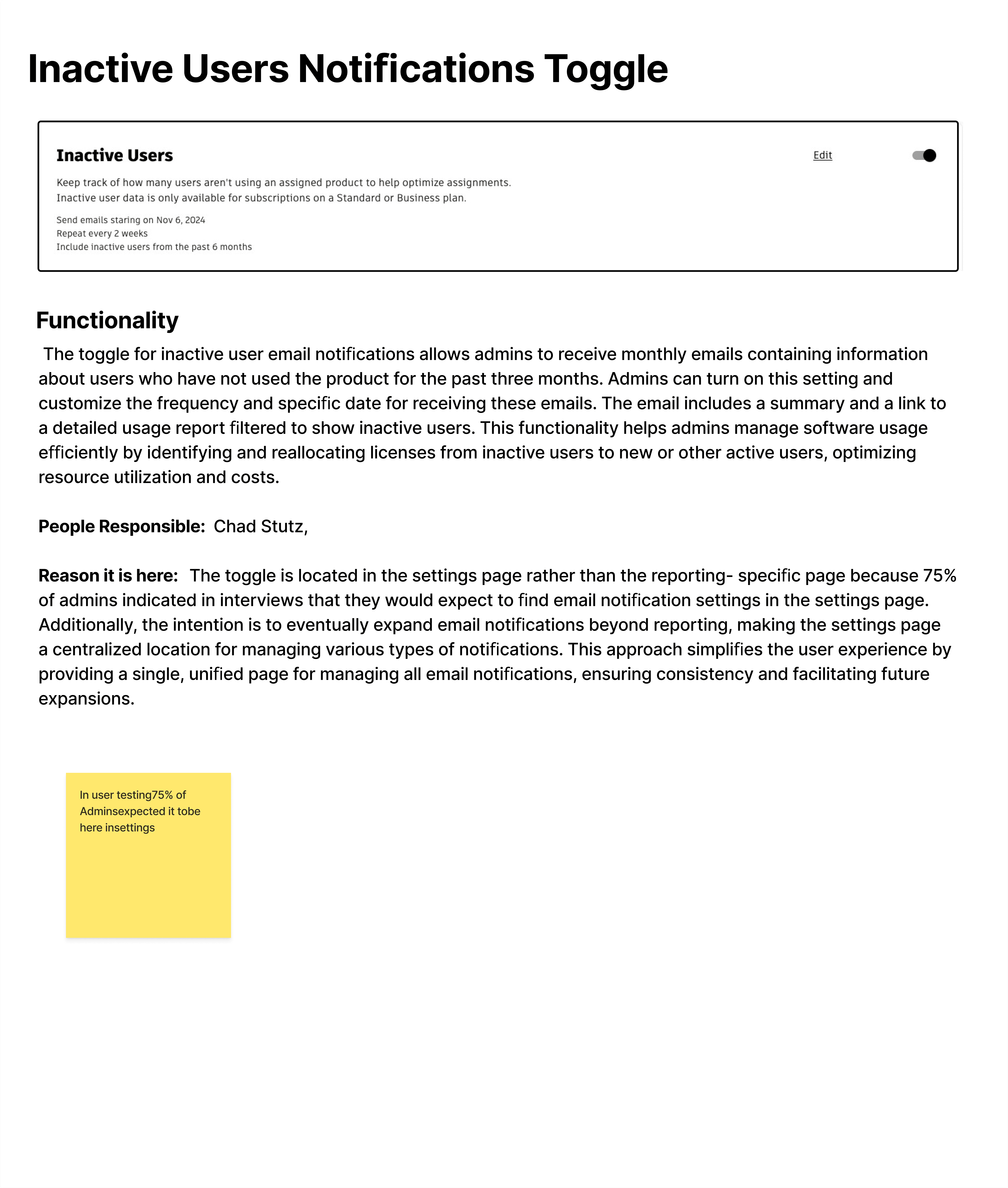 Based on this input, I updated the category name to “Email Notifications” so that it more accurately reflected both the existing settings and those planned for the roadmap.
